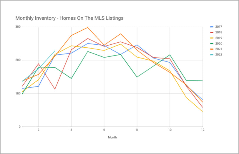 In the coming months, there may be some relief coming for buyers looking for a home. Q1 inventory has steadily been on the rise for the last four years. At the end of March Q1 inventory in 2022 was 6% higher than Q1 of 2021 for Santa Cruz County.