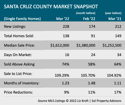 The Santa Cruz County market ended the winter with one of the wildest months we have ever seen. Nearly all of the data points that I track showed us that March was one of the hottest ever.