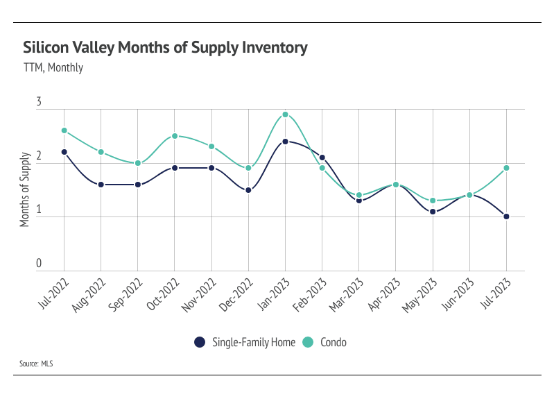 Months of Supply Inventory remained under two months in July, indicating a strong sellers’ market