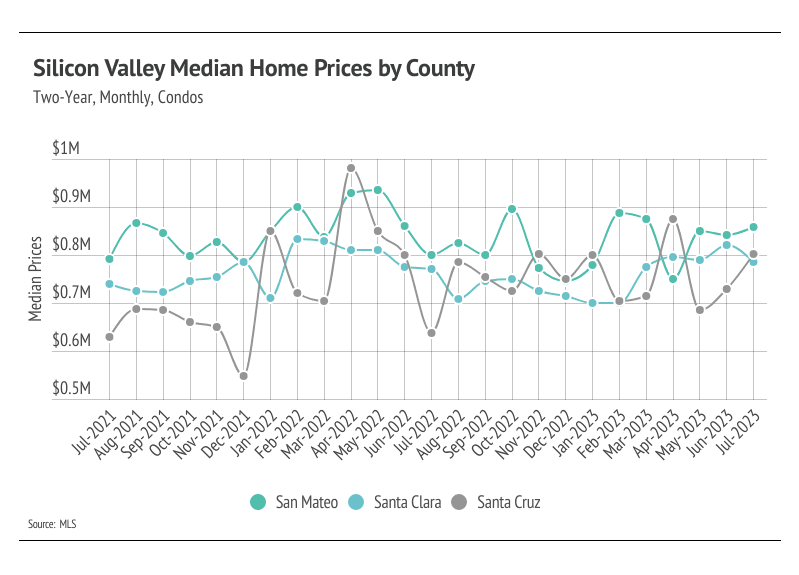Year to date, single-family home and condo prices were up significantly across Silicon Valley. We expect seasonal trends to hold through the rest of the year and for home prices to remain fairly stable.